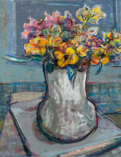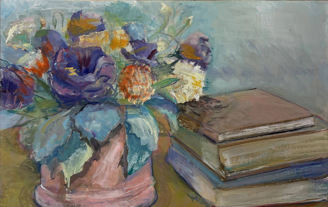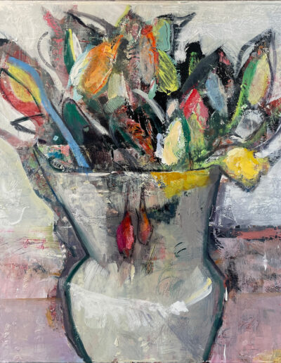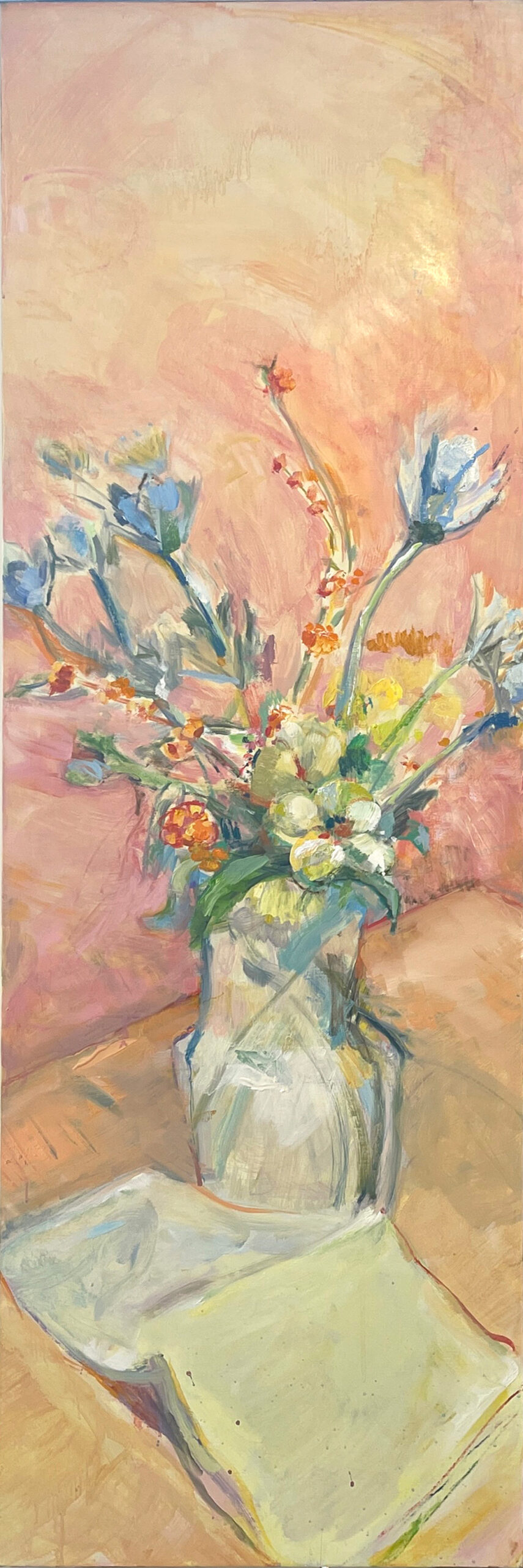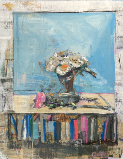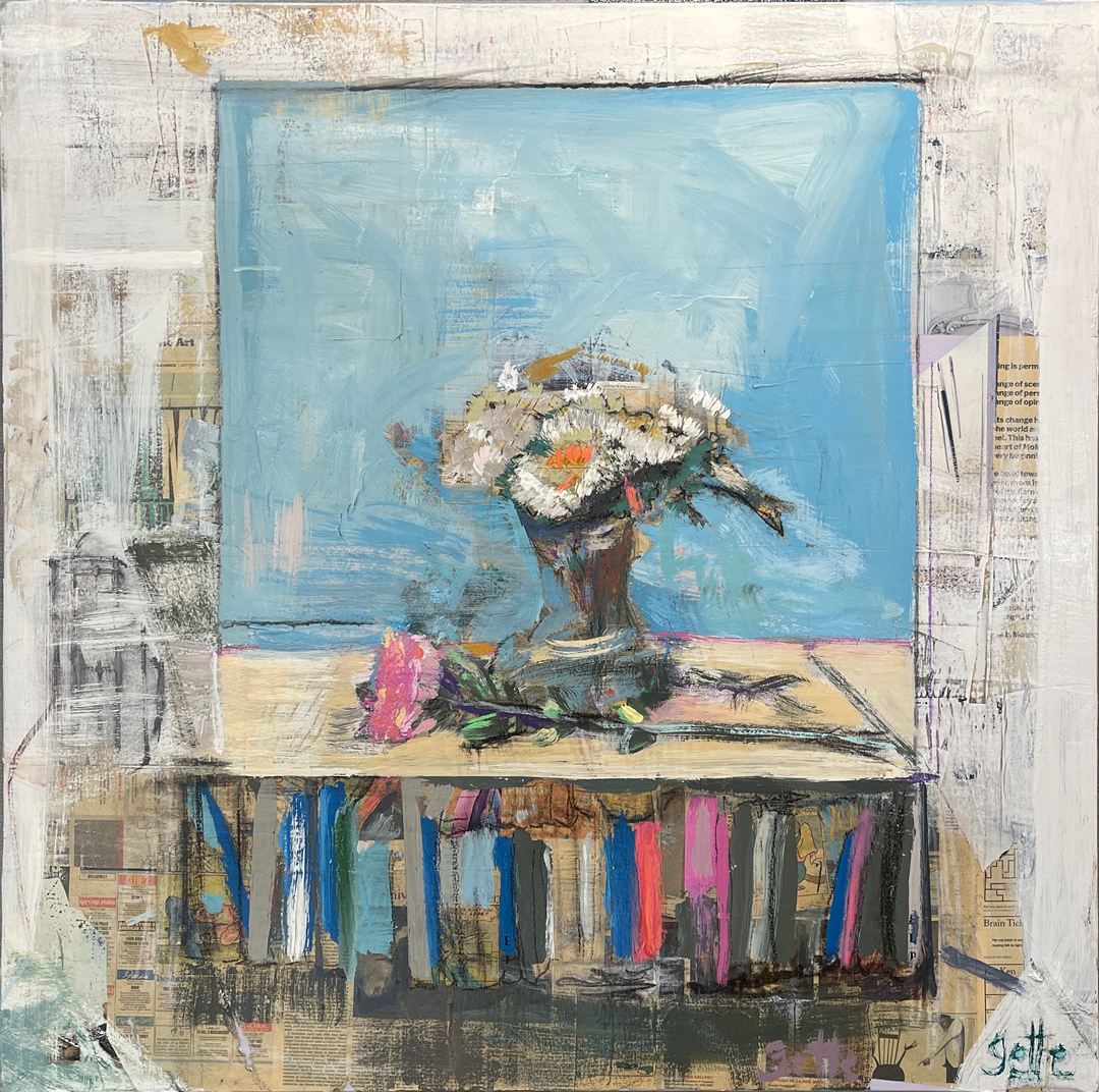 This group of oil paintings and mixed-media collages reflects my interest in both still life and abstraction. Begun during the Covid years, this body of work offered an opportunity to take a familiar subject and create a visual language of my own.