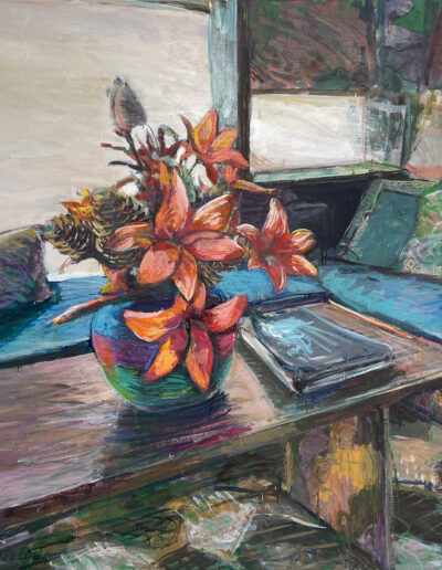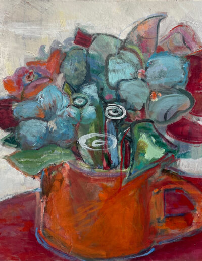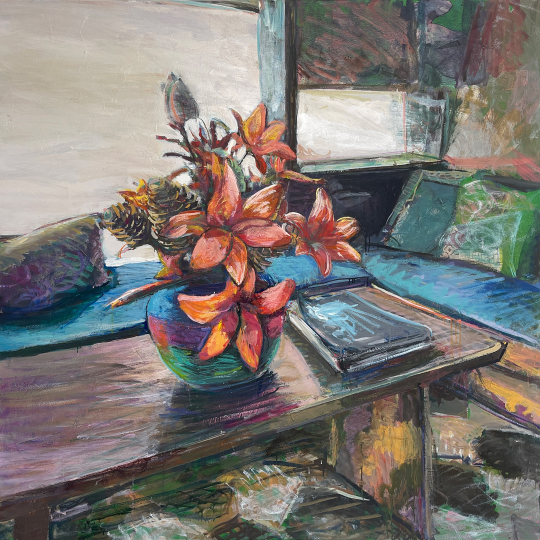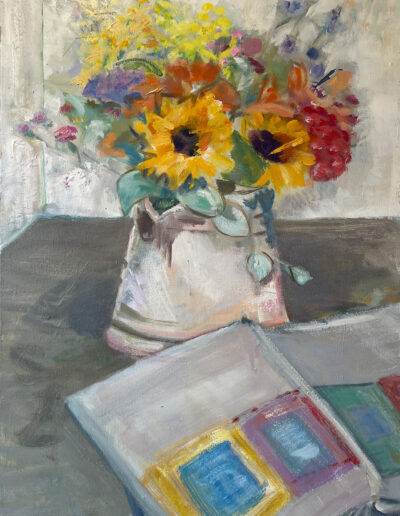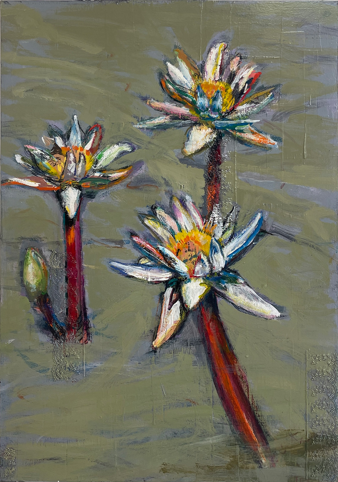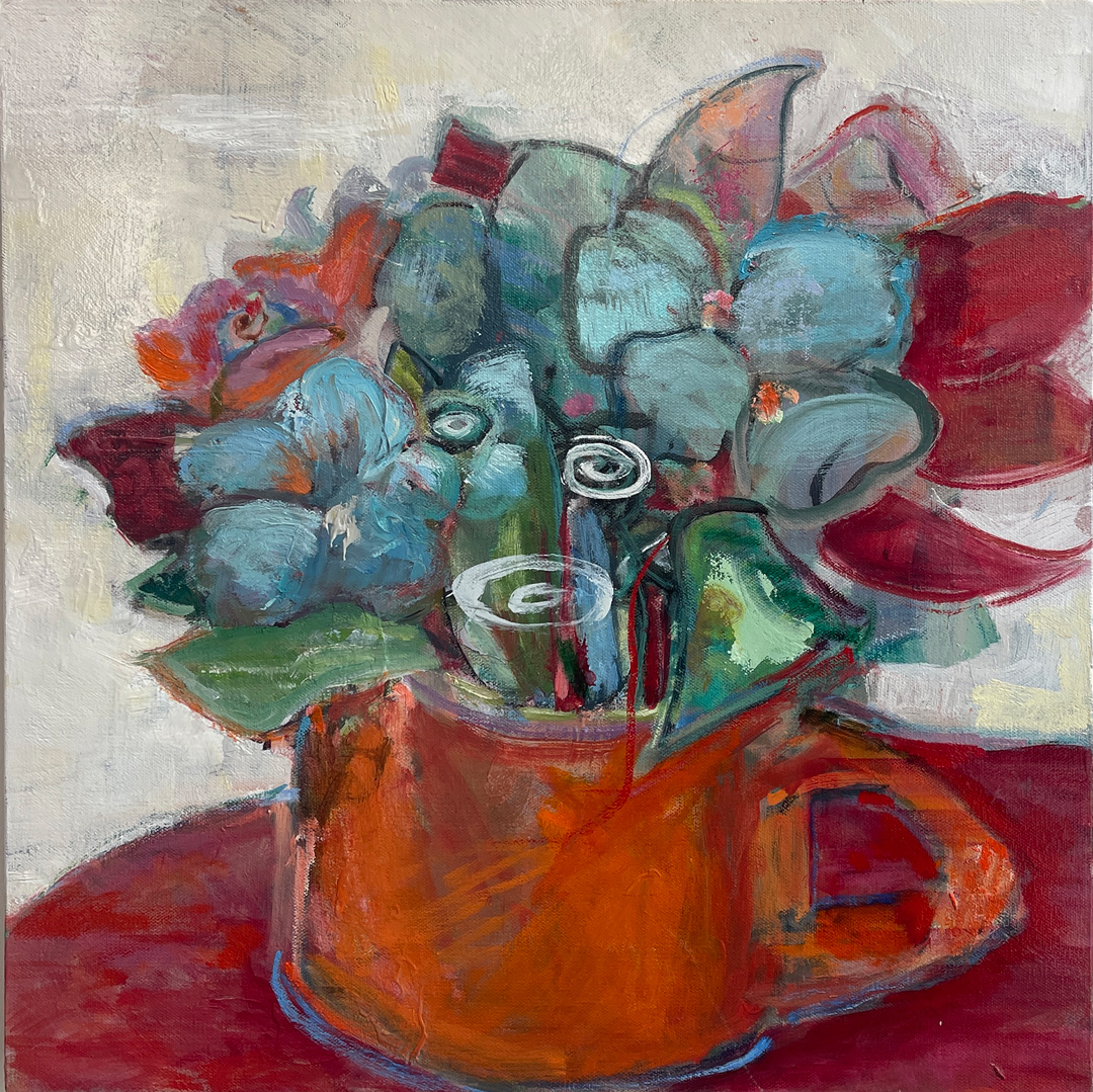 This group of oil paintings and mixed-media collages reflects my interest in both still life and abstraction. Begun during the Covid years, this body of work offered an opportunity to take a familiar subject and create a visual language of my own.