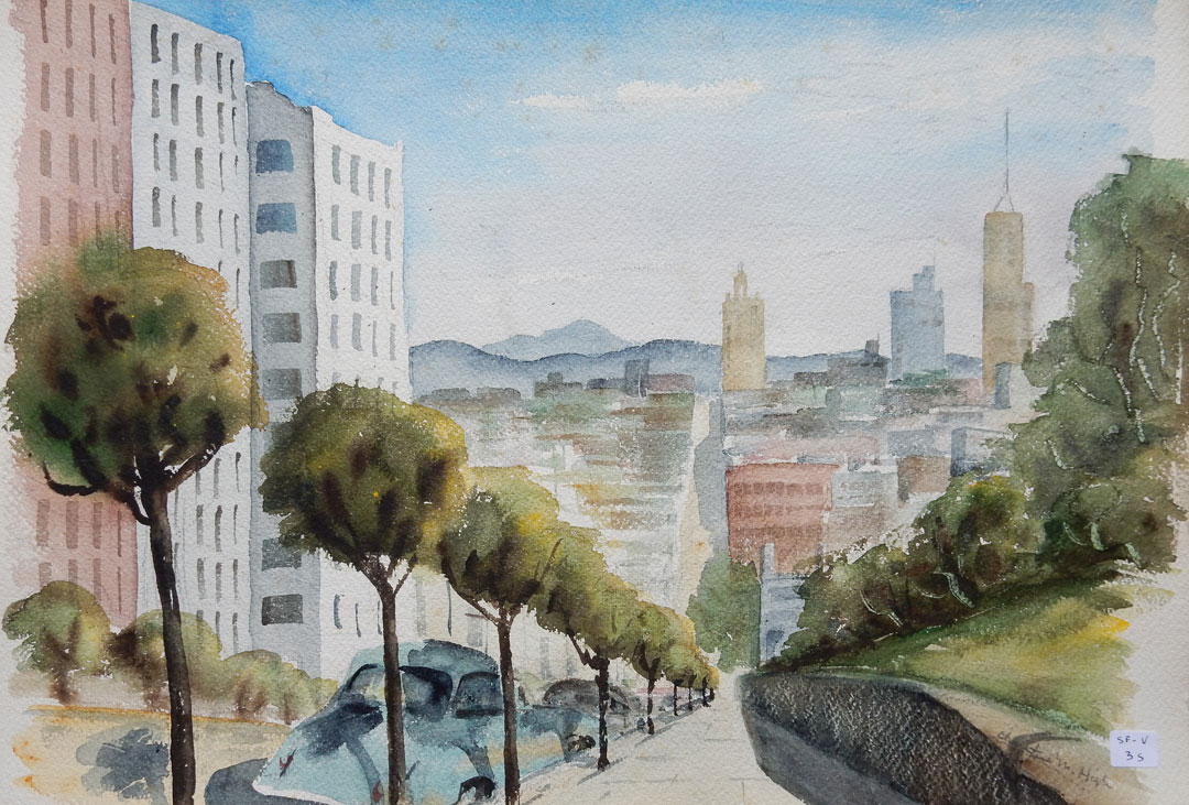 1940s San Francisco. Watercolor on Paper. Signed. 15″ x 20″ #SF-N-11