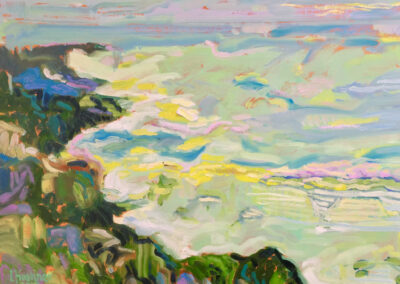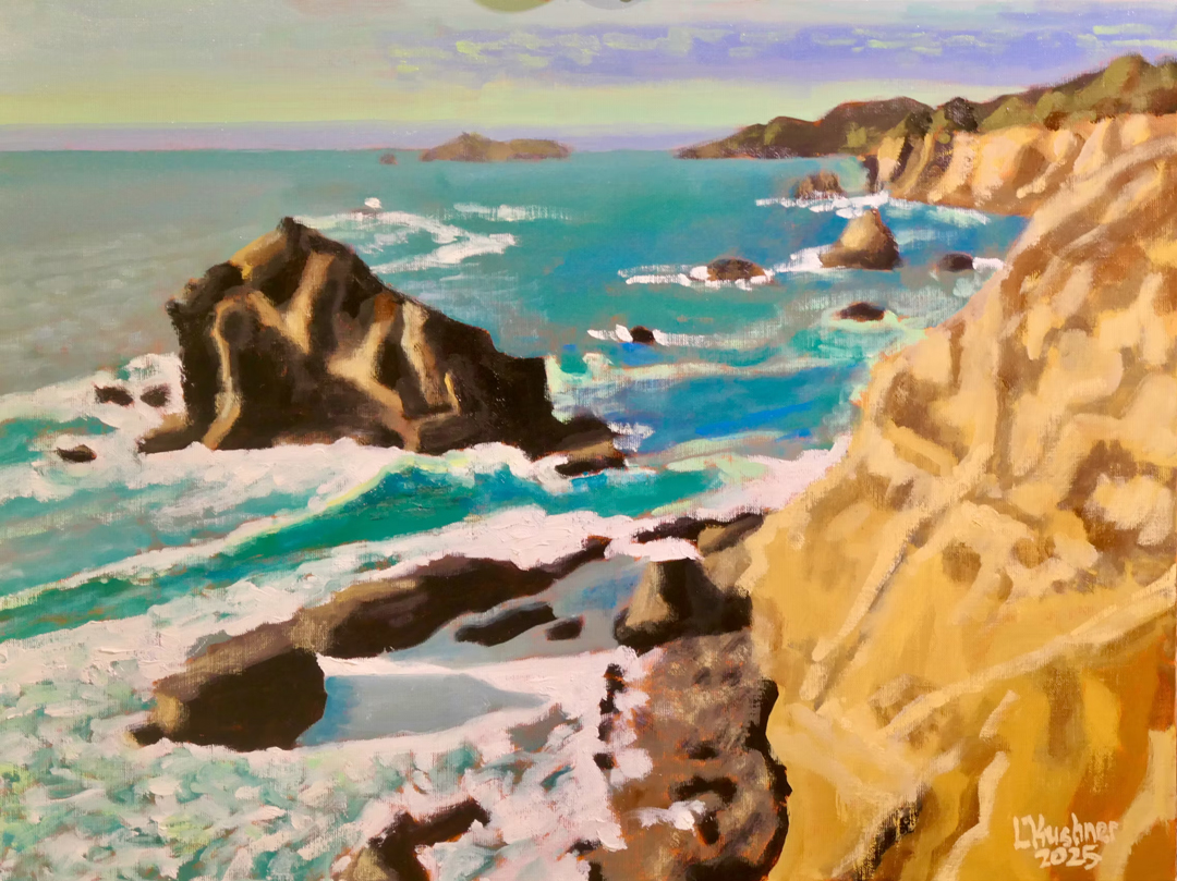 Known for their spiritual depth and vibrant light patterns, Lawrence Kushner’s oil paintings have been exhibited in galleries across the San Francisco Bay Area. In addition to regional exhibitions, Kushner’s work hangs in the collection of the Hilbert Museum of California Art at Chapman University and has also been juried into the California Art Club’s premiere 110th, 111th and 112th Gold Medal Exhibitions (2021, 2022, 2023) in Los Angeles. Exclusively, he works in oils.