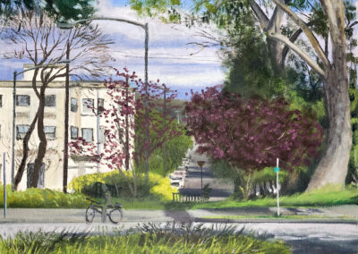 Tom currently works as the Bay Area Representative for Dixon Ticonderoga and Strathmore paper, and teaches at Artworks fine art studio in San Francisco. He was the 2021-22 recipient of the Tournesol Award at the Headlands Center for the Arts. Most days, he can be found painting En Plein Air.