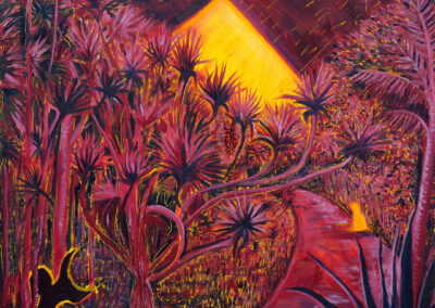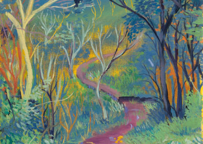 Exploring these two bodies of work together has allowed me the space to ponder perception from both an interior and exterior place. It is my understanding that “real” life is utilized in the mind as the raw basis that constitutes reality, yet what is filtered by the mind influences what is seen. In my case, and in the context of this exhibition, the Plein Air observations are the clay used to sculpt the way I experience reality, and ultimately provide a pictorial basis for how to structure the imagined/psychological landscape. These landscapes of the mind constitute my experience of reality, and influences what I look for the next time I am out in the open-air landscape.